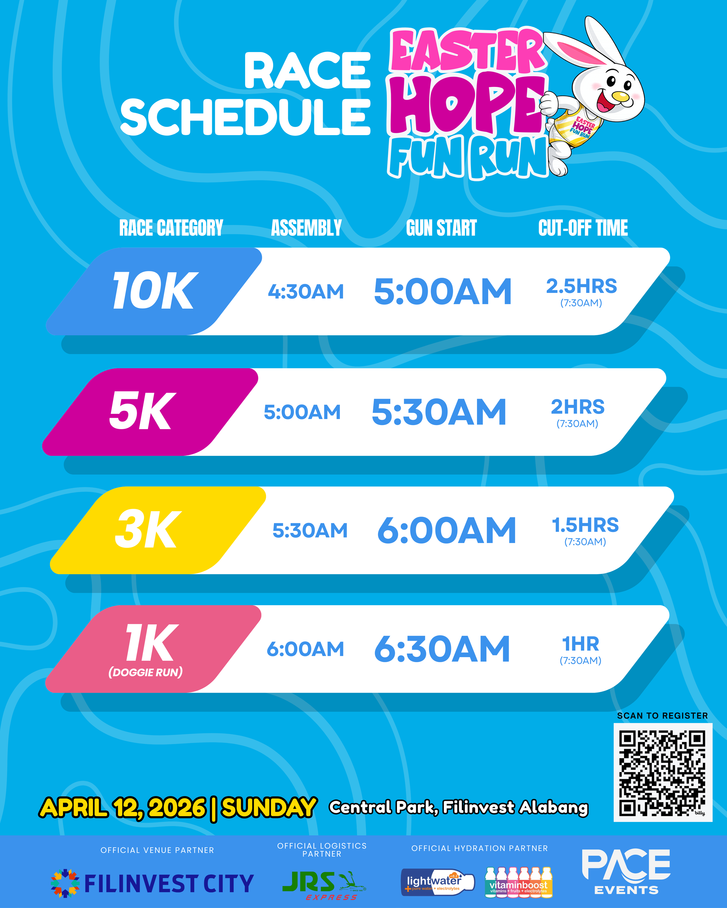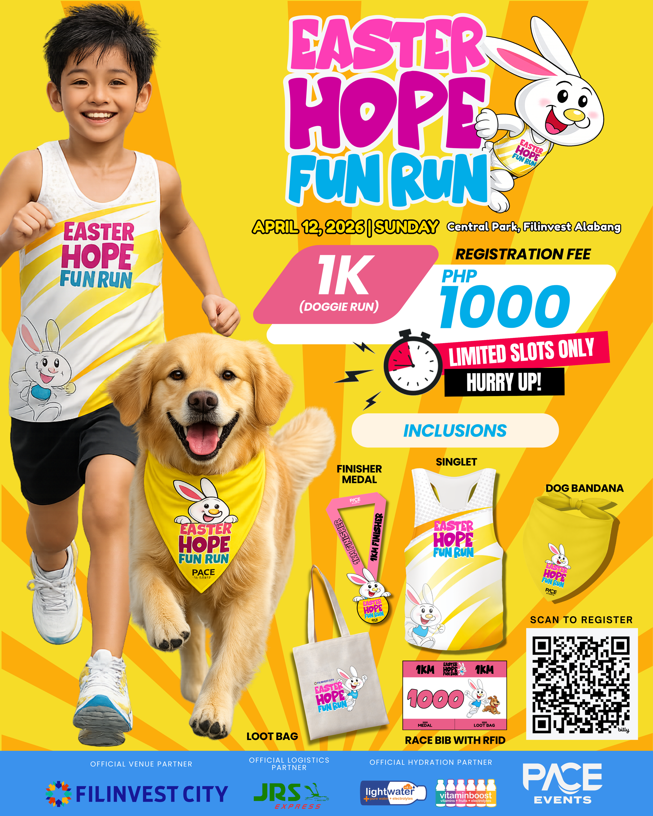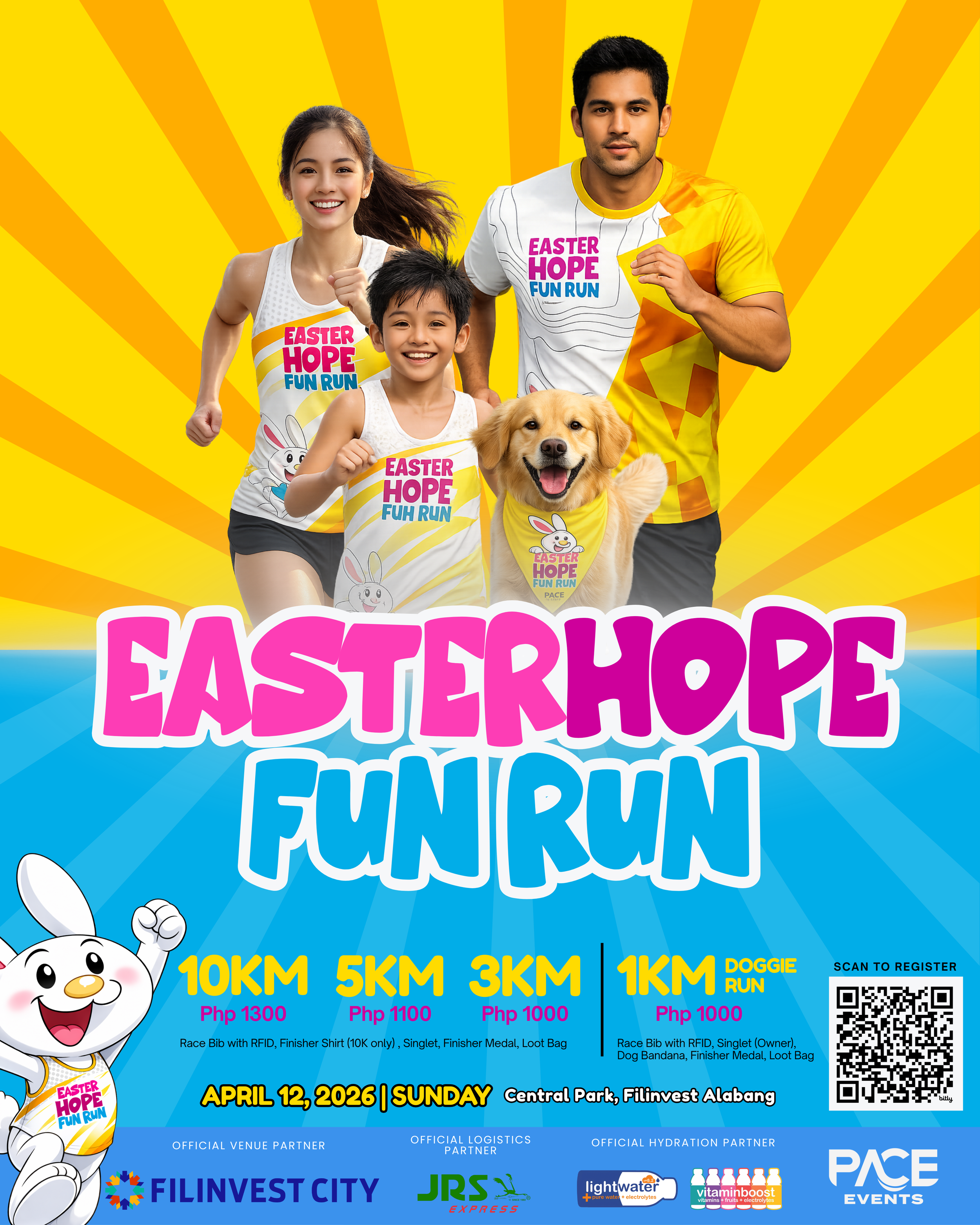 Join us for a day full of joy, energy, and meaningful miles at the Easter Hope Fun Run 2026! 🐰✨ Lace up and celebrate hope in motion on April 12, 2026 (Sunday) at Central Park, Filinvest Alabang.
